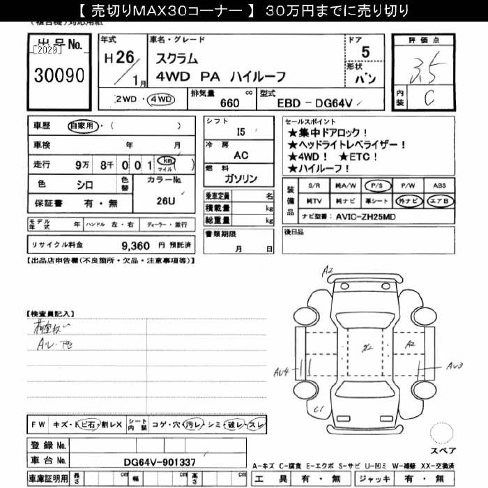 Год выпуска2014 Пробег 98 000 км КузовDG64V Комплектация4WD PA HIGH ROOF