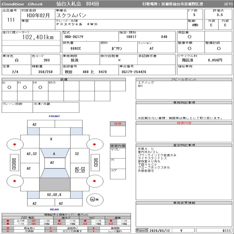 Статус выставлен на аукцион Лот 111 Аукцион ORIX Sendai Дата аукциона 17.03.2026
