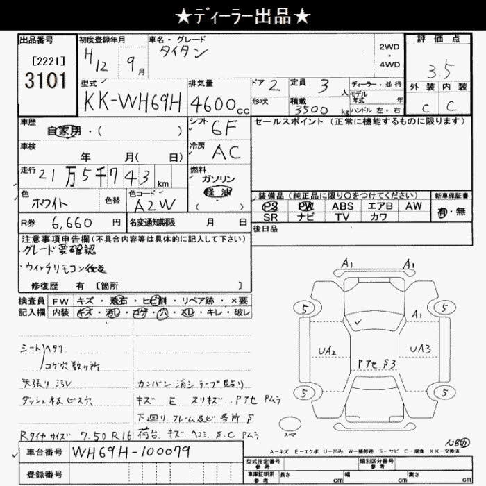 Год выпуска2000 Пробег 216 000 км КузовWH69H Комплектация3.5 TON 3 PERSON