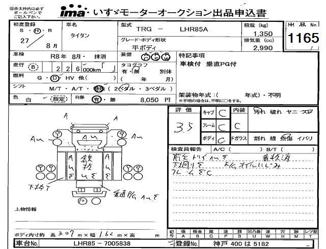 Статус выставлен на аукцион Лот 1165 Аукцион Isuzu Kobe Дата аукциона 30.01.2026