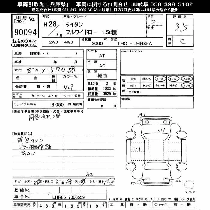 Год выпуска2016 Пробег 183 000 км КузовLHR85A Комплектация FULL WIDE LOW 1.5T