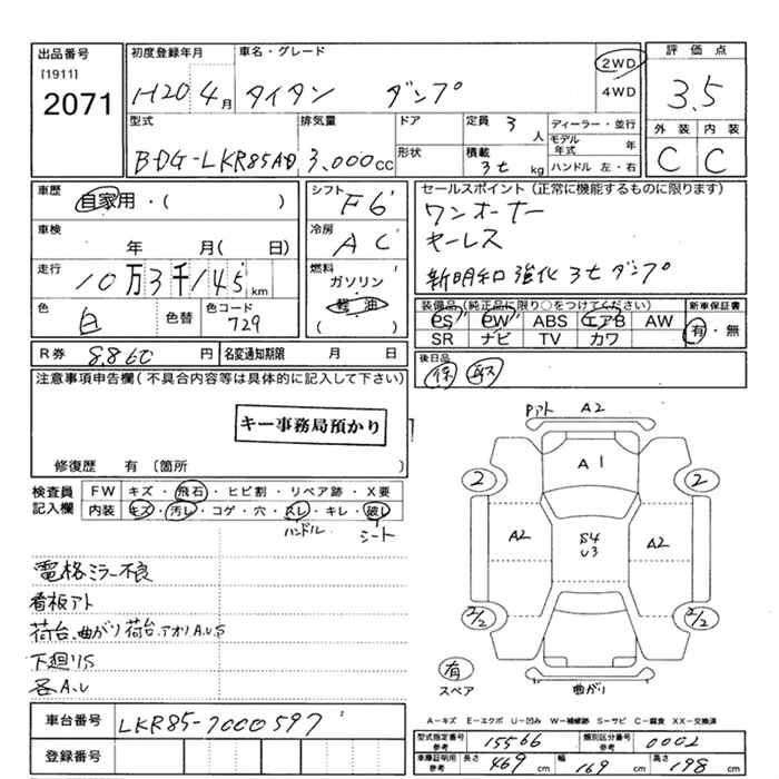 Год выпуска2008 Пробег 103 000 км КузовLKR85AD Комплектация DUMP