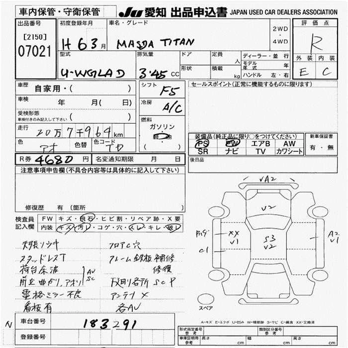 Статус выставлен на аукцион Лот 7021 Аукцион JU Aichi Дата аукциона 19.03.2026