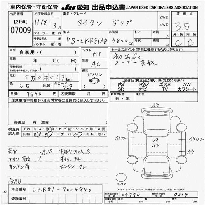 Год выпуска2006 Пробег 51 000 км КузовLKR81AD Комплектация DUMP