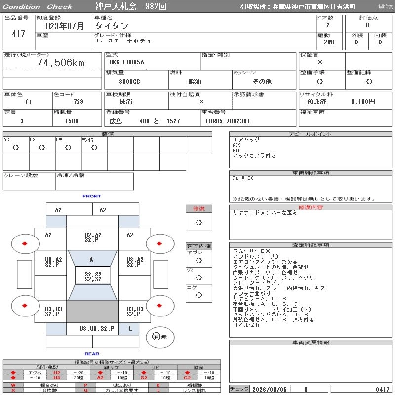 Статус выставлен на аукцион Лот 417 Аукцион ORIX Kobe Дата аукциона 17.03.2026
