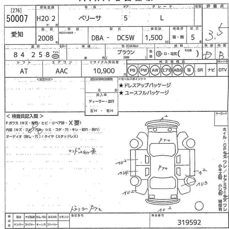 Статус выставлен на аукцион Лот 50007 Аукцион MIRIVE Aichi Дата аукциона 30.01.2026