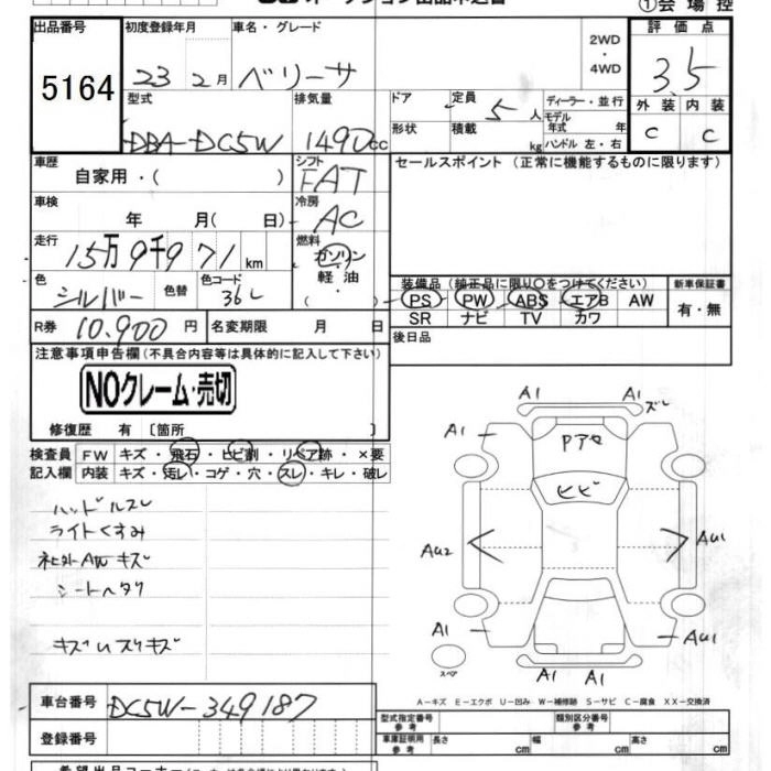 CLASSY STYLE DBA-DC5W ZY-VE FF 4AT 1498cc 113ps(83kW)/6000rpm AИ-92 1 640 000