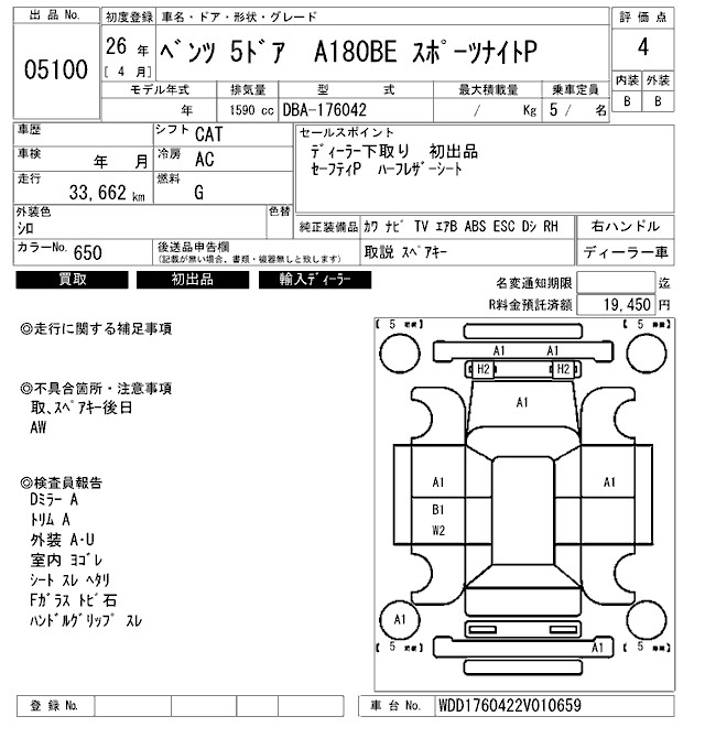 MERCEDES BENZ A CLASS 2014 г., лот № 5100