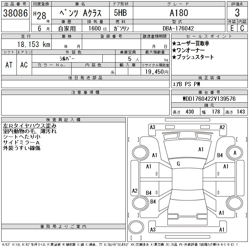 MERCEDES BENZ A CLASS 2016 г., лот № 38086