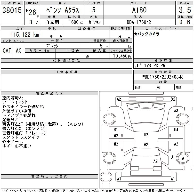 MERCEDES BENZ A CLASS 2014 г., лот № 38015