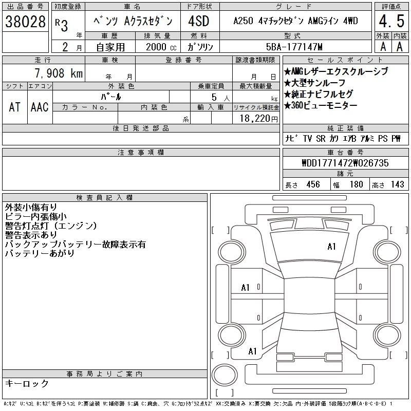 MERCEDES BENZ A CLASS 2021 г., лот № 38028