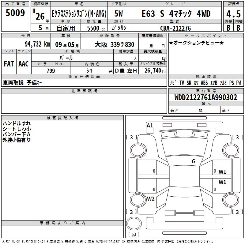MERCEDES BENZ AMG E CLASS STATION WAGON 2014 г., лот № 5009