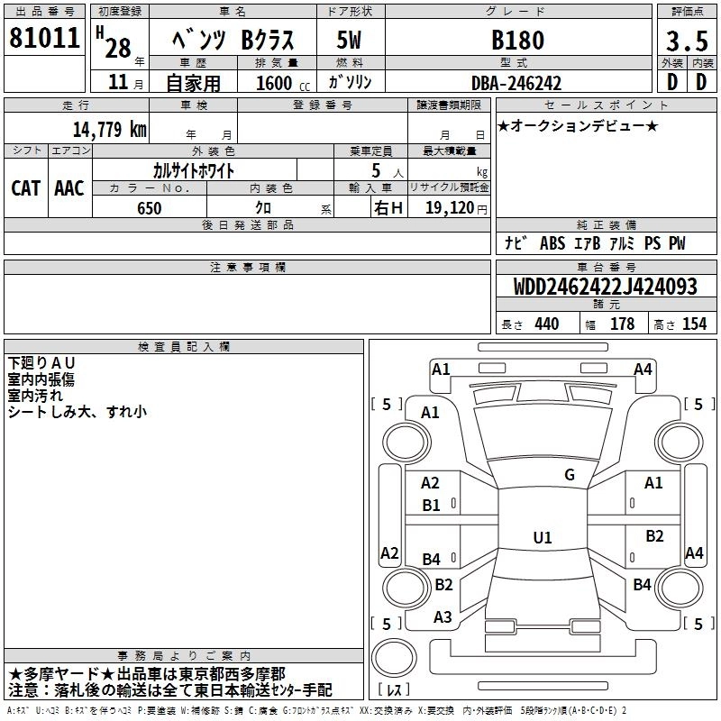 MERCEDES BENZ B CLASS 2016 г., лот № 81011