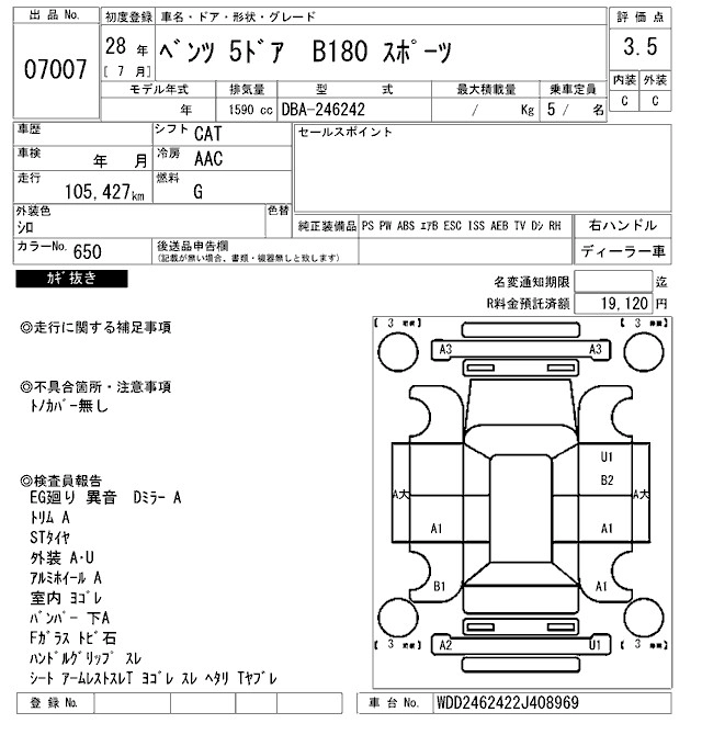 MERCEDES BENZ B CLASS 2016 г., лот № 7007