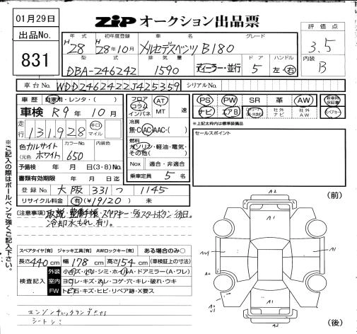 MERCEDES BENZ B CLASS 2016 г., лот № 831