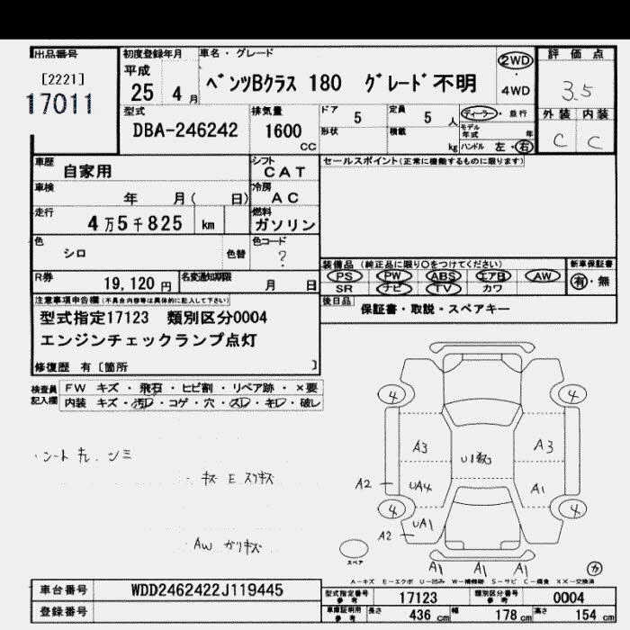 MERCEDES BENZ B CLASS 2013 г., лот № 17011