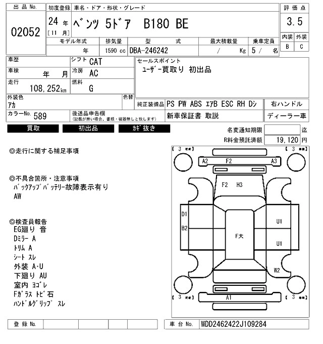 MERCEDES BENZ B CLASS 2012 г., лот № 2052