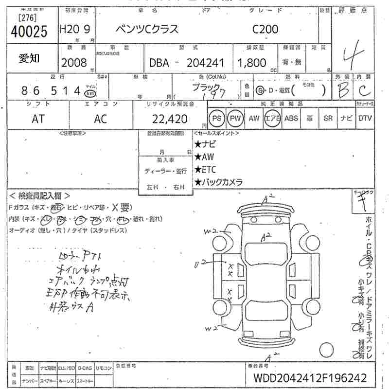Год выпуска2008 Пробег 87 000 км Кузов204241 КомплектацияC200 WAGON COMPRESSOR