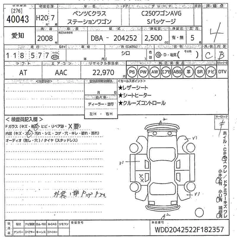 MERCEDES BENZ C CLASS STATION WAGON 2008 г., лот № 40043