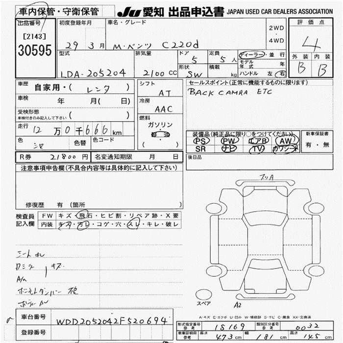 MERCEDES BENZ C CLASS STATION WAGON 2017 г., лот № 30595