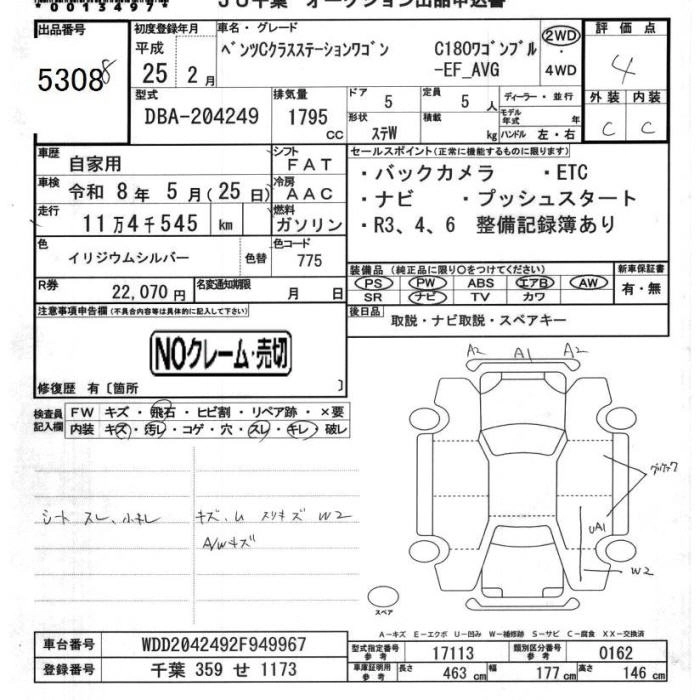 MERCEDES BENZ C CLASS STATION WAGON 2013 г., лот № 5308