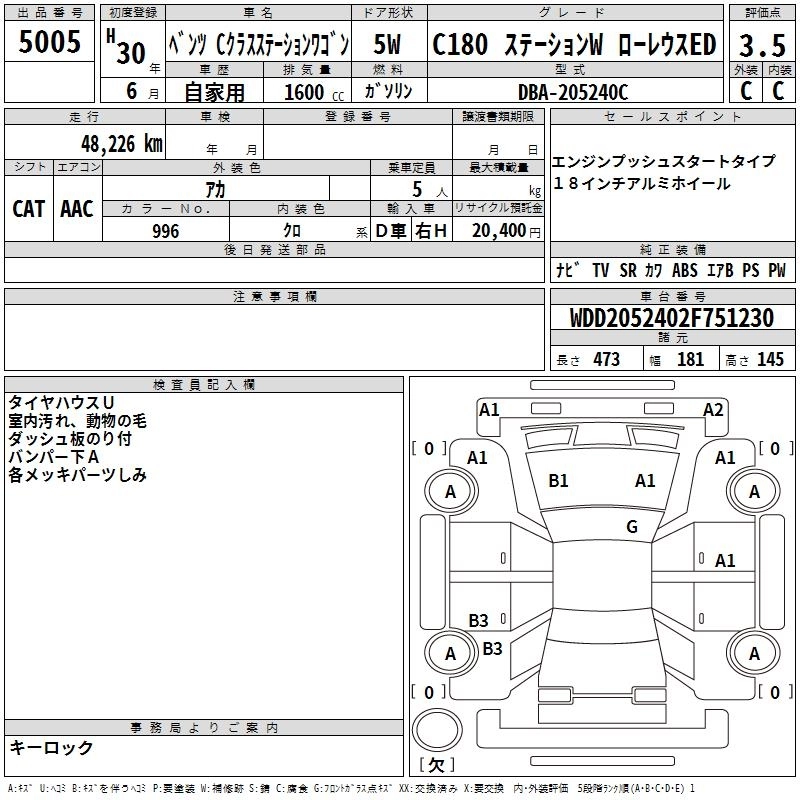 48 000 км Кузов205240C КомплектацияC180 STATION W LOW RE LIGHT ED
