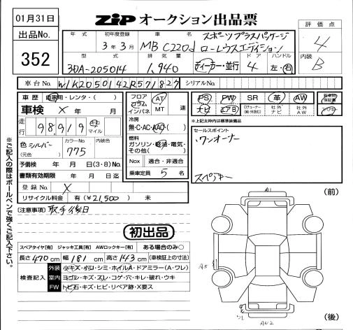 Статус выставлен на аукцион Лот 352 Аукцион ZIP Tokyo Дата аукциона 31.01.2026