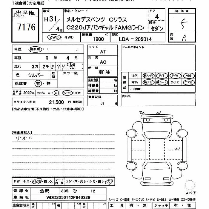 MERCEDES BENZ C CLASS 2019 г., лот № 7176