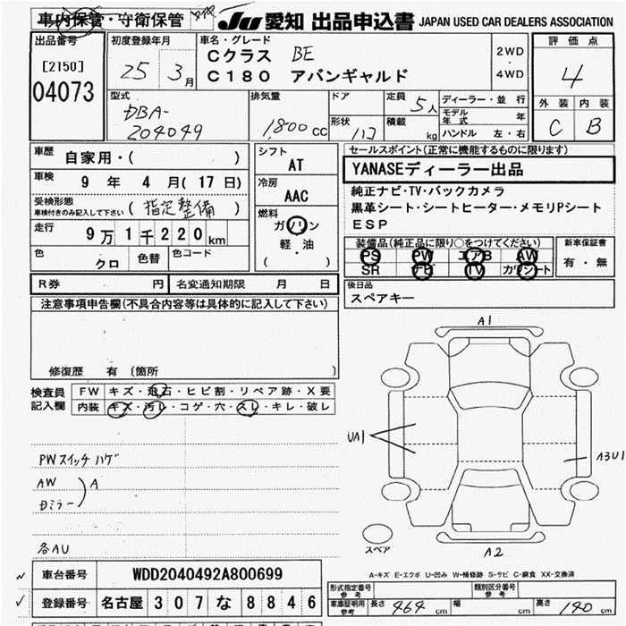 MERCEDES BENZ C CLASS 2013 г., лот № 4073
