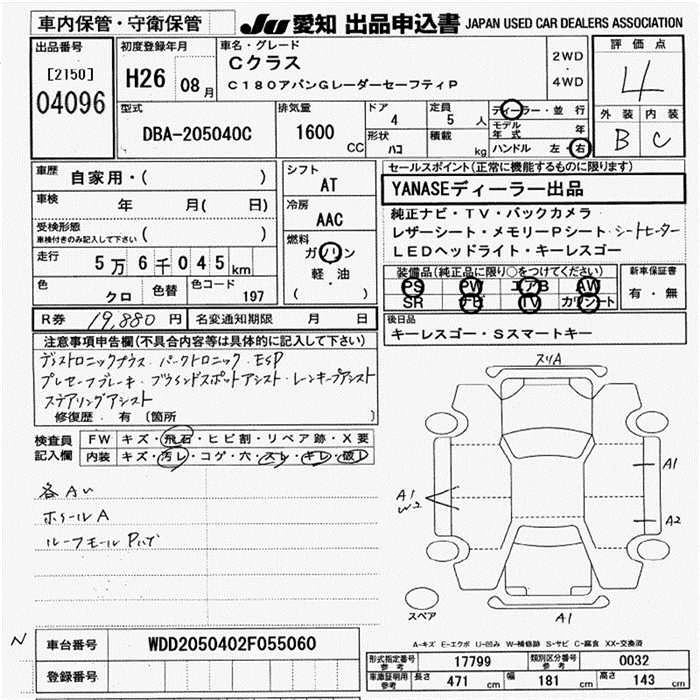 MERCEDES BENZ C CLASS 2014 г., лот № 4096