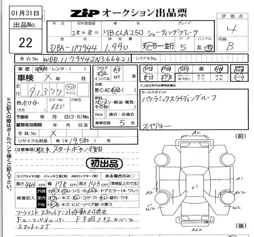 Стартовая цена авто на аукционе 0 ¥