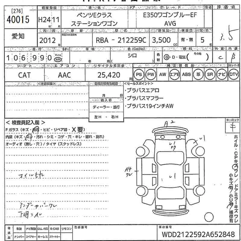 MERCEDES BENZ E CLASS STATION WAGON 2012 г., лот № 40015