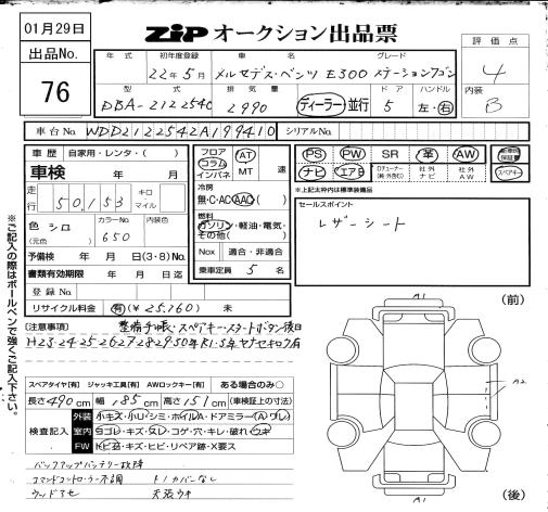MERCEDES BENZ E CLASS STATION WAGON 2010 г., лот № 76