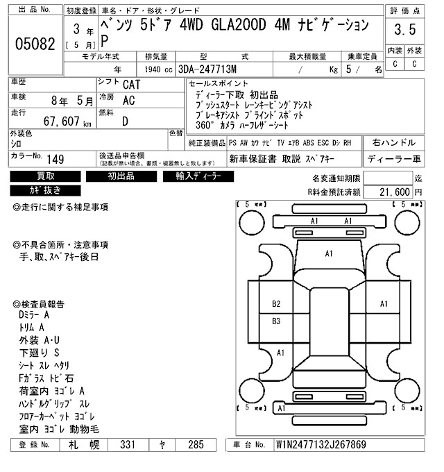 Год выпуска2021 Пробег 68 000 км Кузов247713M КомплектацияGLA200D 4M NAVIGATION P