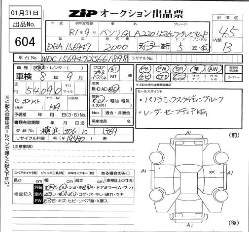 Статус выставлен на аукцион Лот 604 Аукцион ZIP Tokyo Дата аукциона 31.01.2026