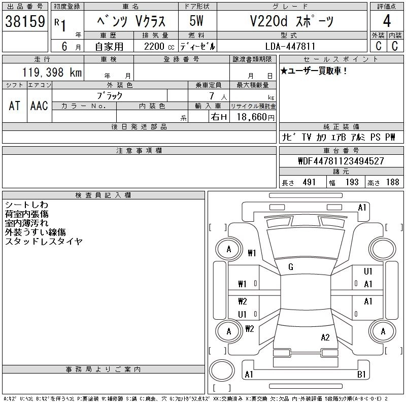 MERCEDES BENZ V CLASS 2019 г., лот № 38159