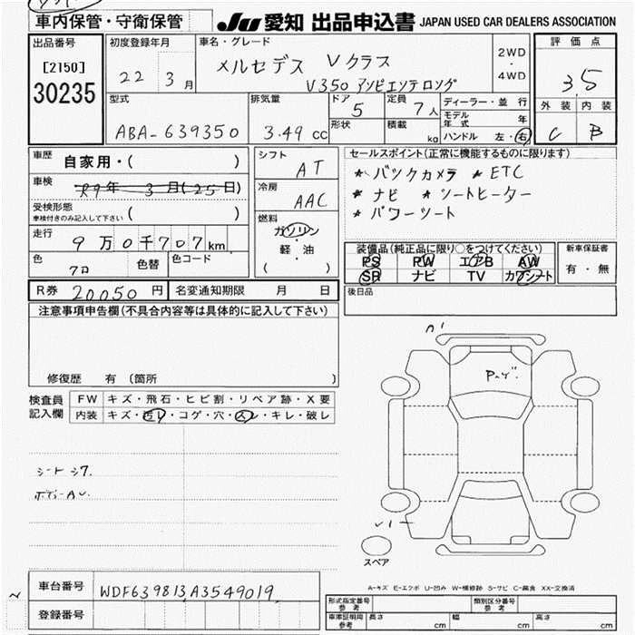 MERCEDES BENZ V CLASS 2010 г., лот № 30235