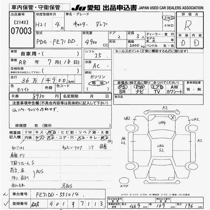 Статус выставлен на аукцион Лот 7003 Аукцион JU Aichi Дата аукциона 29.01.2026