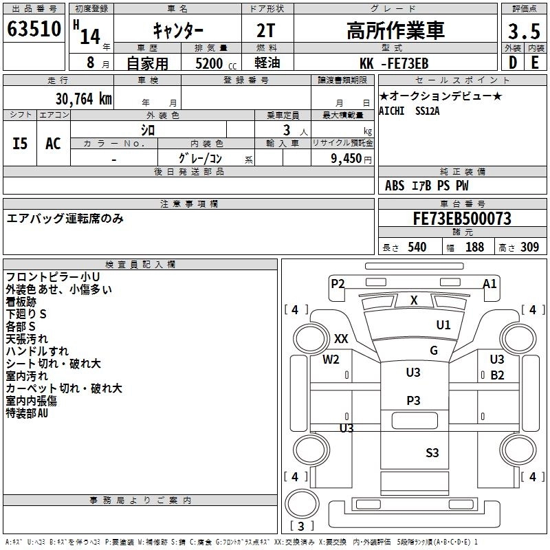 Год выпуска2002 Пробег 31 000 км КузовFE73EB Комплектация HIGH PLACE OPERATION CAR