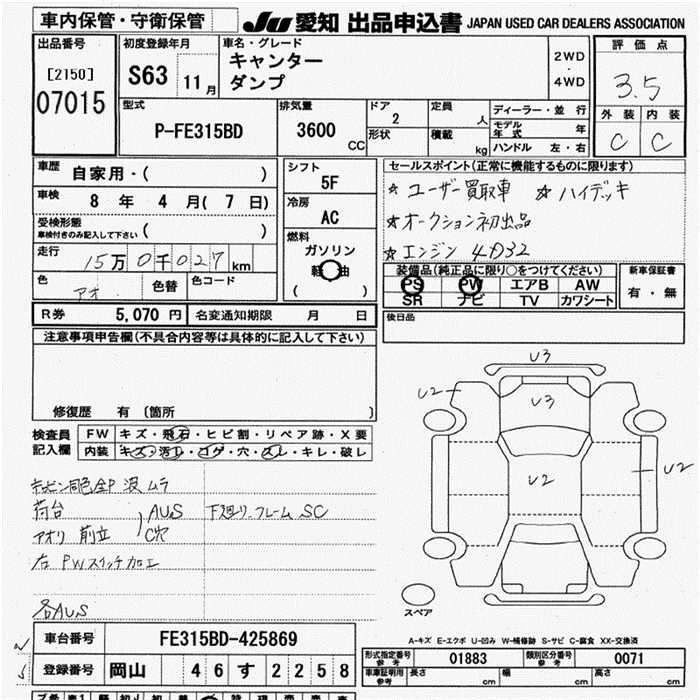 Статус выставлен на аукцион Лот 7015 Аукцион JU Aichi Дата аукциона 19.03.2026