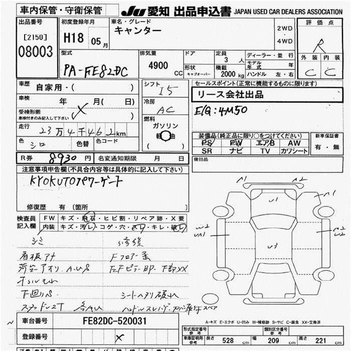 Статус выставлен на аукцион Лот 8003 Аукцион JU Aichi Дата аукциона 19.03.2026