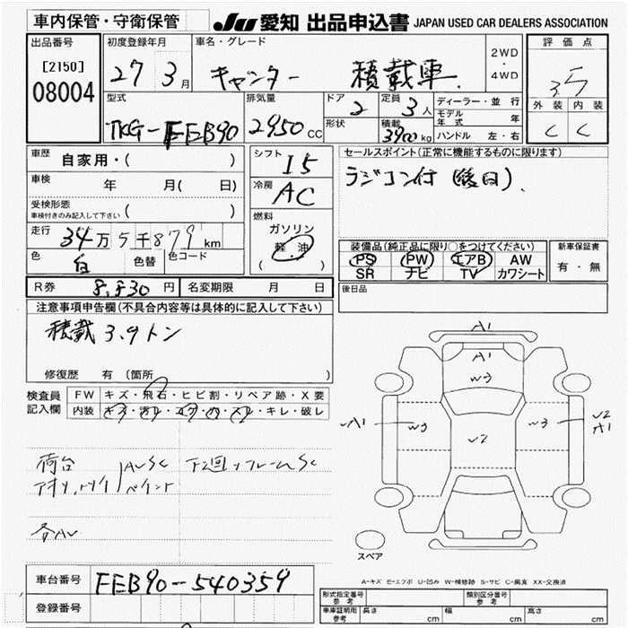 Статус выставлен на аукцион Лот 8004 Аукцион JU Aichi Дата аукциона 19.03.2026