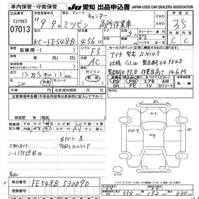 Год выпуска1997 Пробег 135 000 км КузовFE548B Комплектация HIGH PLACE OPERATION CAR