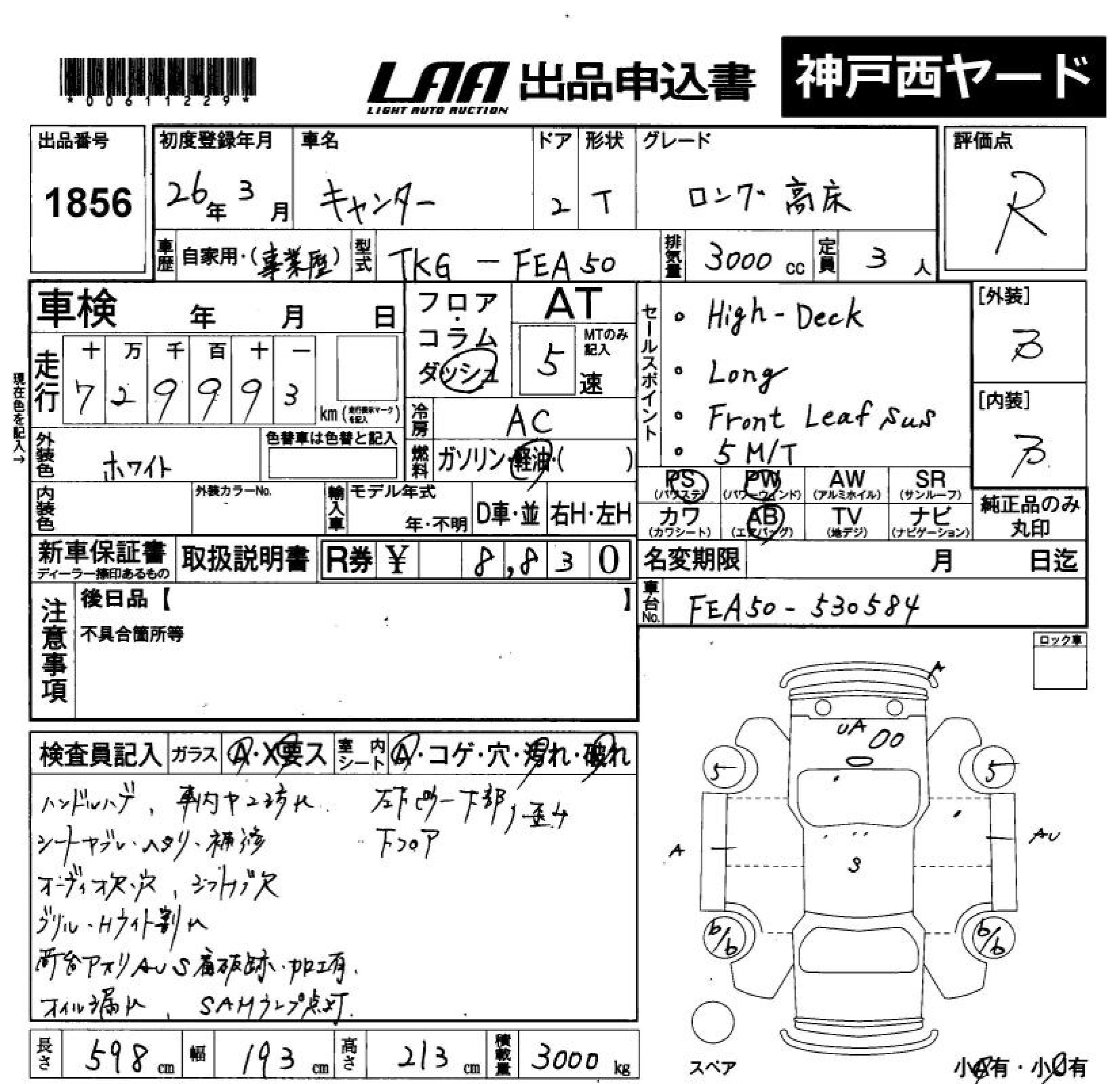 Статус выставлен на аукцион Лот 1856 Аукцион LAA Okayama Дата аукциона 20.03.2026