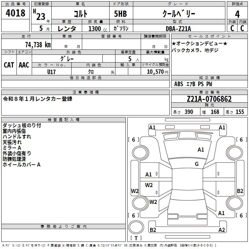 | COOL VERY | DBA-Z22A | 4A90 MIVEC | Full-time 4WD | CVT | 1332cc | 91ps(67kW)/6000rpm | AИ-92 | 1 460 000 | |
