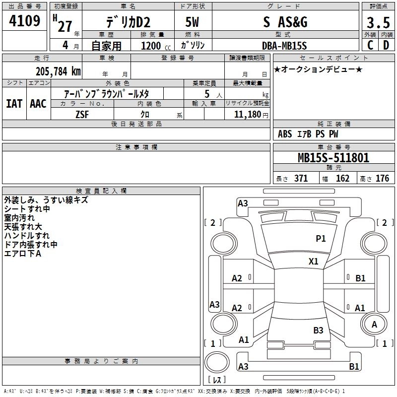 MITSUBISHI DELICA D:2 2015 г., лот № 4109