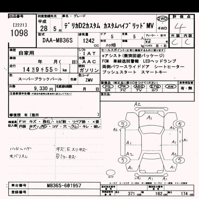 MITSUBISHI DELICA D:2 2016 г., лот № 1098