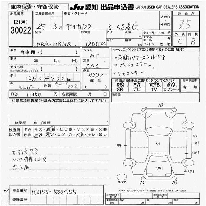 MITSUBISHI DELICA D:2 2013 г., лот № 30022