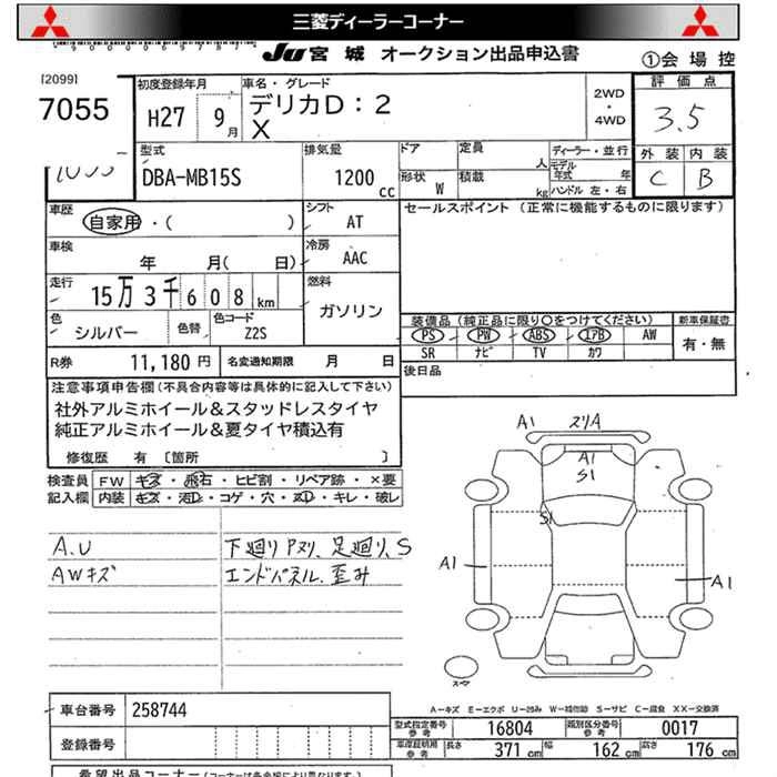 MITSUBISHI DELICA D:2 2015 г., лот № 7055