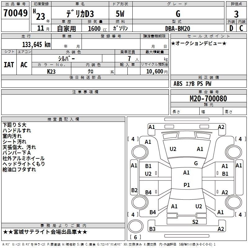 MITSUBISHI DELICA D:3 2011 г., лот № 70049